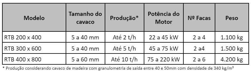 O RTB é a aplicação ideal para o aproveitamento de cavaco over size, proveniente de processos de classificação de biomassa. A versatilidade desta solução também permite o processamento de materiais como: