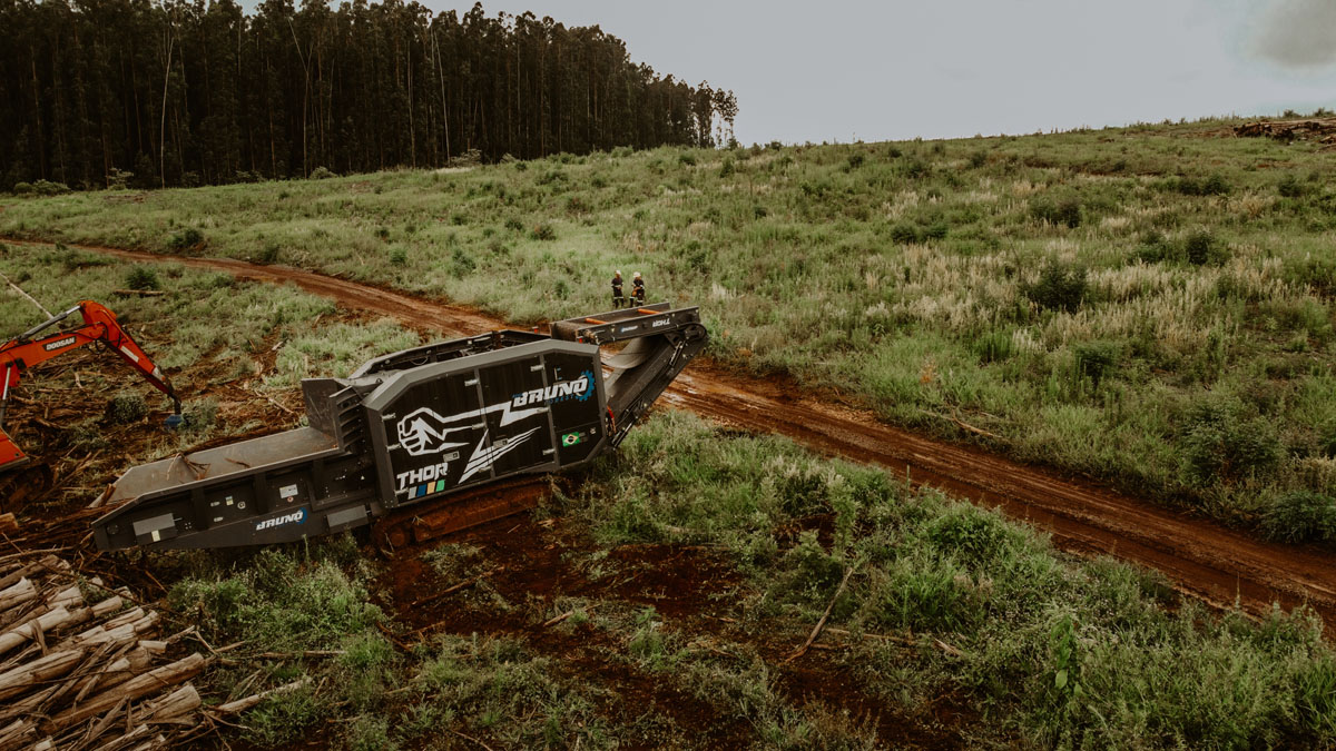 Indicado para processamento de árvores inteiras – pinus e eucaliptos –, supressão nativa, tocos, raízes e acácia, o Thor entrega alta produtividade com baixo consumo de combustível.