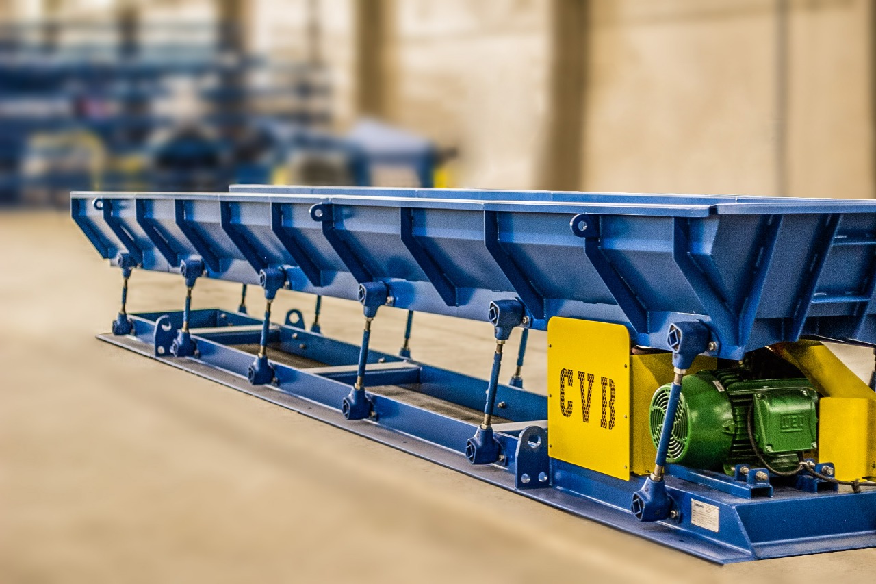 As calhas vibratórias podem ser equipadas com detectores de metais e são amplamente utilizadas na alimentação de picadores a tambor e no transporte de resíduos em serrarias.
